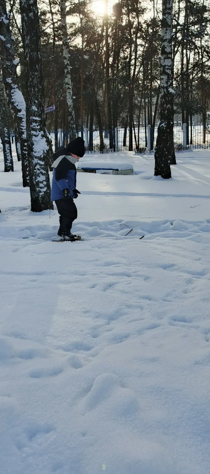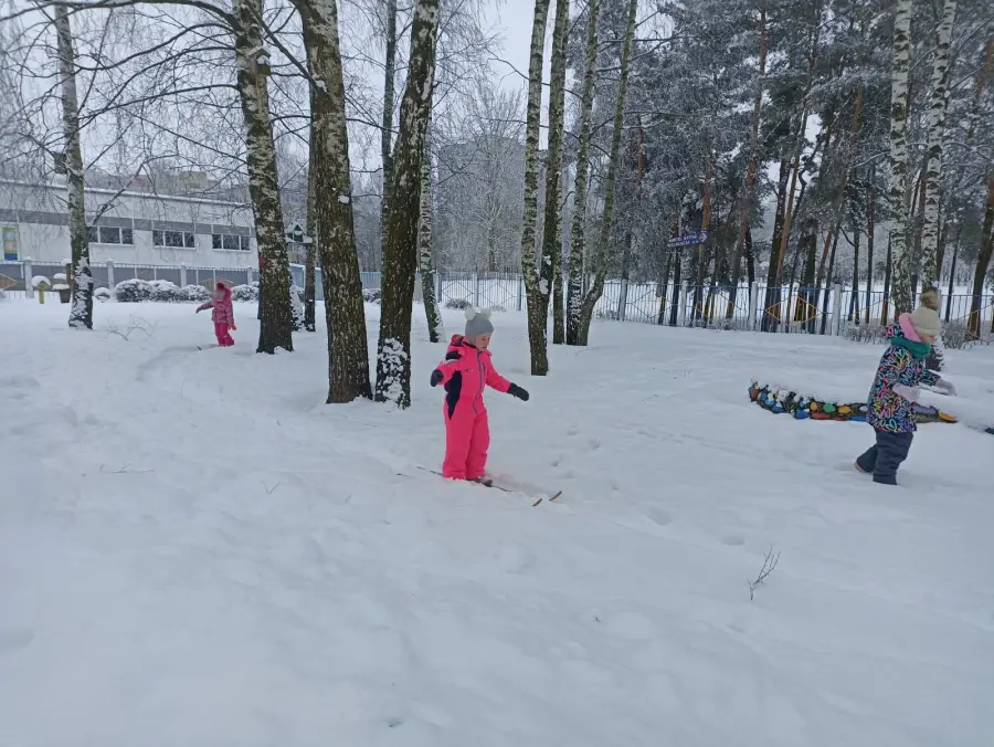 Дети надели лыжи, теплую одежду и с энтузиазмом отправились в путь. Многие впервые пробовали кататься на лыжах — сначала с опорой, затем уверенно скользя по заснеженной трассе, преодолевая небольшие подъёмы и плавные спуски. Атмосфера была радостной и спокойной: дети смеялись, помогали друг другу, наслаждались звуками хрустящего снега и играющими лучами солнца среди берёз.